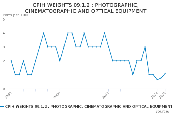 Download this time seriesCPIH WEIGHTS 09.1.2 : PHOTOGRAPHIC, CINEMATOGRAPHIC AND OPTICAL EQUIPMENT