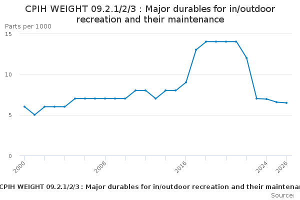 Download this time seriesCPIH WEIGHT 09.2.1/2/3 : Major durables for in/outdoor recreation and their maintenance