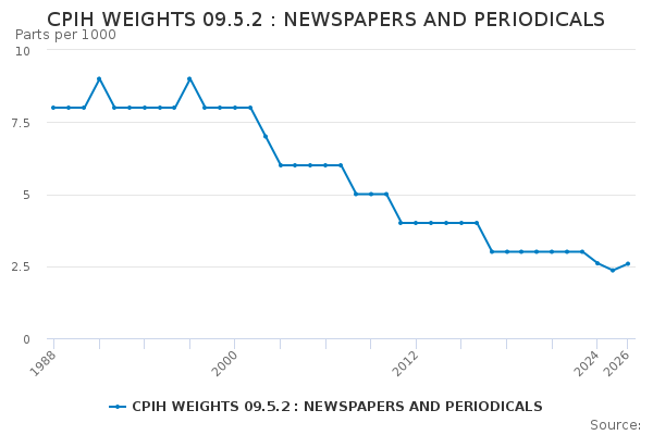 Download this time seriesCPIH WEIGHTS 09.5.2 : NEWSPAPERS AND PERIODICALS