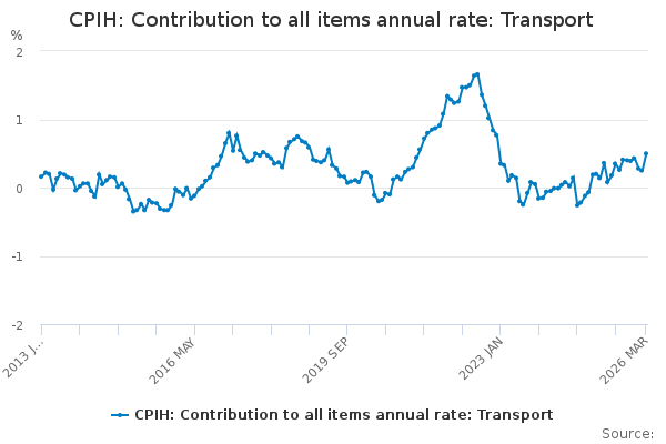 Download this time seriesCPIH: Contribution to all items annual rate: Transport