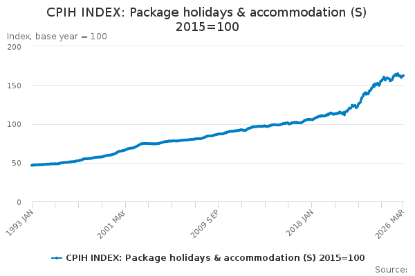 Download this time seriesCPIH INDEX: Package holidays & accommodation (S) 2015=100