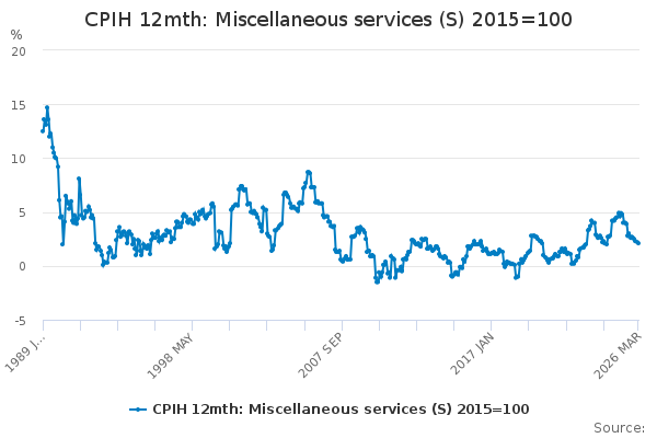 Download this time seriesCPIH 12mth: Miscellaneous services (S) 2015=100