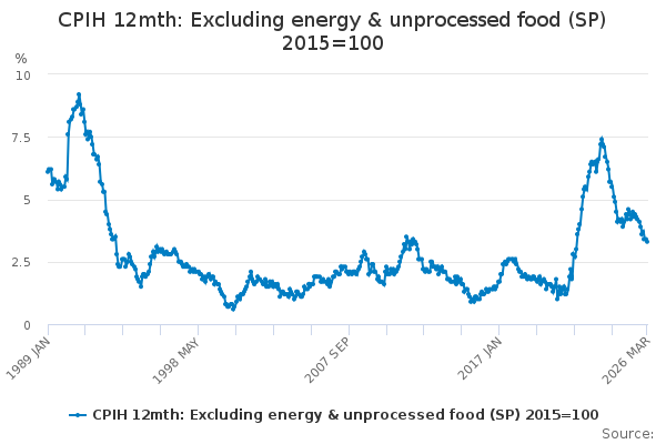 Download this time seriesCPIH 12mth: Excluding energy & unprocessed food (SP) 2015=100