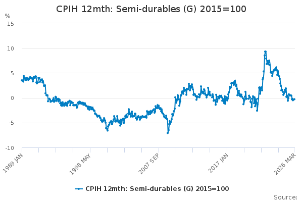 Download this time seriesCPIH 12mth: Semi-durables (G) 2015=100