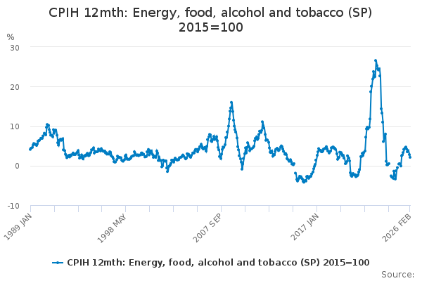 Download this time seriesCPIH 12mth: Energy, food, alcohol and tobacco (SP) 2015=100