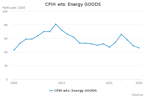 Download this time seriesCPIH wts: Energy GOODS