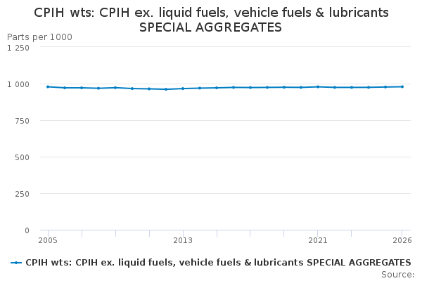 Download this time seriesCPIH wts: CPIH ex. liquid fuels, vehicle fuels & lubricants SPECIAL AGGREGATES