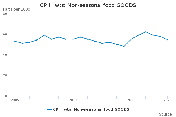 Download this time seriesCPIH wts: Non-seasonal food GOODS