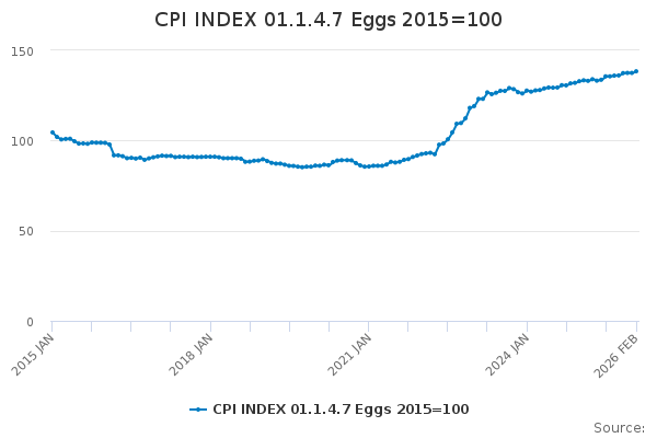 Download this time seriesCPI INDEX 01.1.4.7 Eggs 2015=100