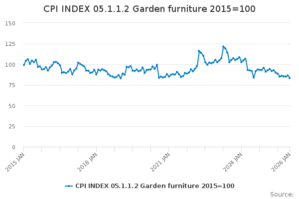Download this time seriesCPI INDEX 05.1.1.2 Garden furniture 2015=100