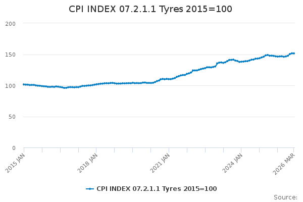 Download this time seriesCPI INDEX 07.2.1.1 Tyres 2015=100