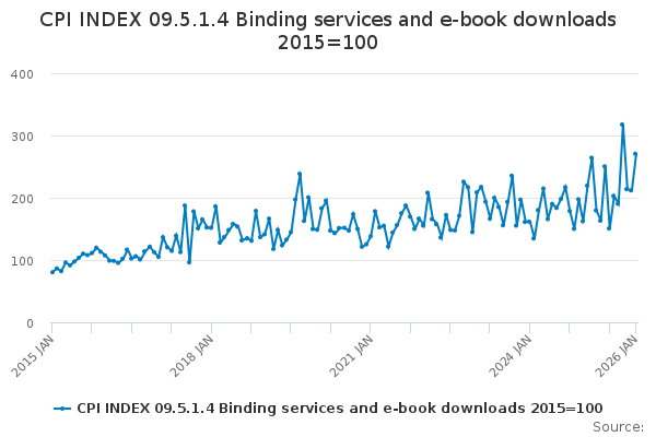 Download this time seriesCPI INDEX 09.5.1.4 Binding services and e-book downloads 2015=100