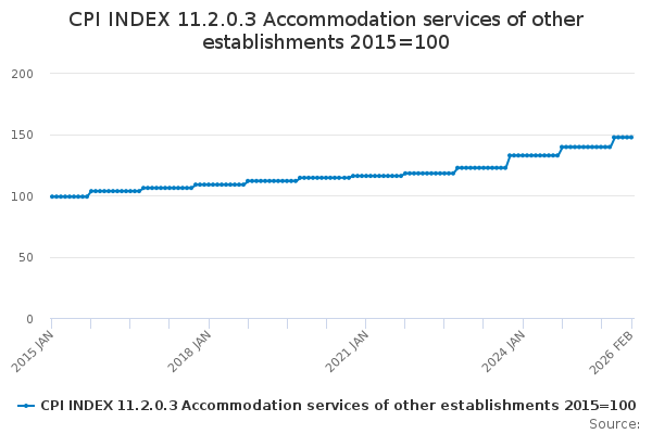Download this time seriesCPI INDEX 11.2.0.3 Accommodation services of other establishments 2015=100