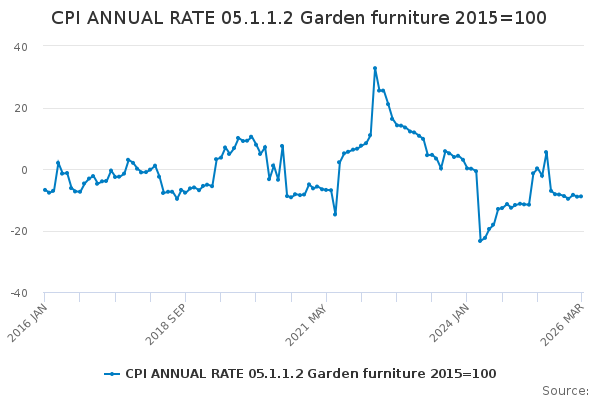 Download this time seriesCPI ANNUAL RATE 05.1.1.2 Garden furniture 2015=100