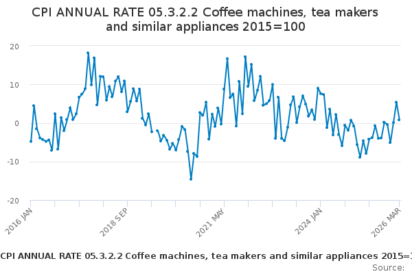 Download this time seriesCPI ANNUAL RATE 05.3.2.2 Coffee machines, tea makers and similar appliances 2015=100