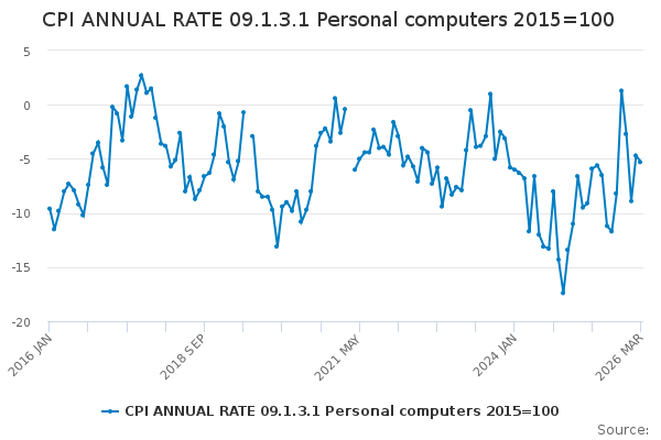 Download this time seriesCPI ANNUAL RATE 09.1.3.1 Personal computers 2015=100