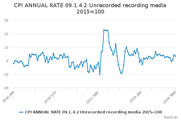 Download this time seriesCPI ANNUAL RATE 09.1.4.2 Unrecorded recording media 2015=100