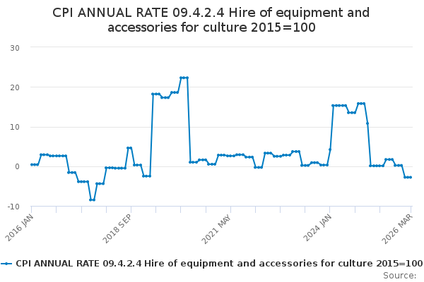 Download this time seriesCPI ANNUAL RATE 09.4.2.4 Hire of equipment and accessories for culture 2015=100