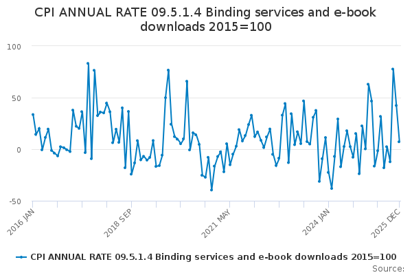 Download this time seriesCPI ANNUAL RATE 09.5.1.4 Binding services and e-book downloads 2015=100