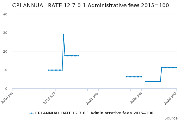 Download this time seriesCPI ANNUAL RATE 12.7.0.1 Administrative fees 2015=100