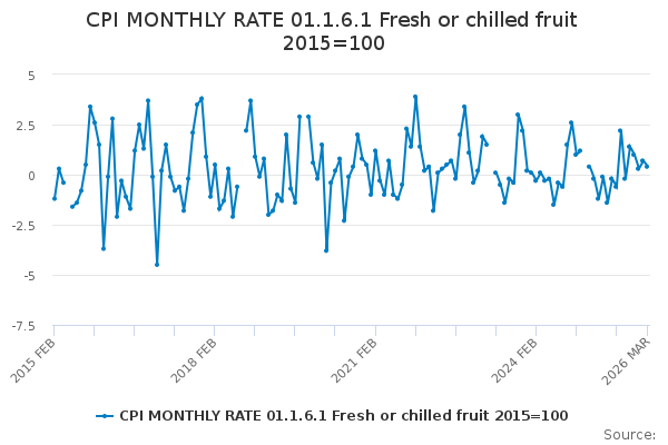 Download this time seriesCPI MONTHLY RATE 01.1.6.1 Fresh or chilled fruit 2015=100