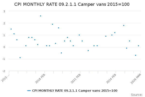 Download this time seriesCPI MONTHLY RATE 09.2.1.1 Camper vans 2015=100