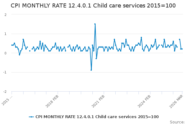 Download this time seriesCPI MONTHLY RATE 12.4.0.1 Child care services 2015=100