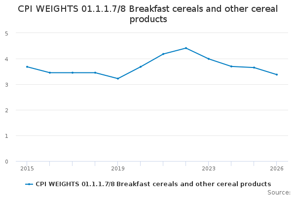 Download this time seriesCPI WEIGHTS 01.1.1.7/8 Breakfast cereals and other cereal products