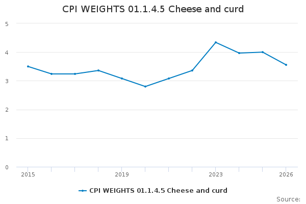 Download this time seriesCPI WEIGHTS 01.1.4.5 Cheese and curd