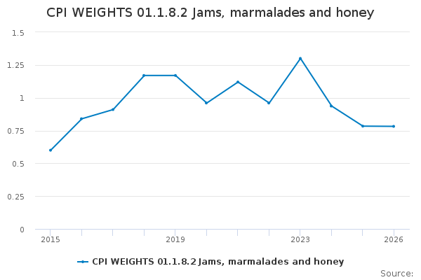 Download this time seriesCPI WEIGHTS 01.1.8.2 Jams, marmalades and honey