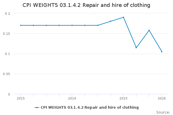 Download this time seriesCPI WEIGHTS 03.1.4.2 Repair and hire of clothing