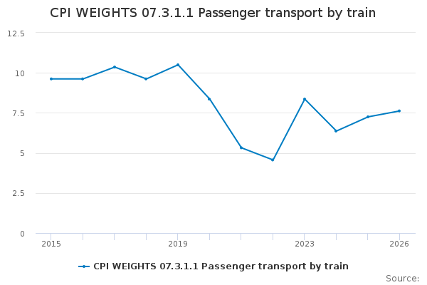 Download this time seriesCPI WEIGHTS 07.3.1.1 Passenger transport by train