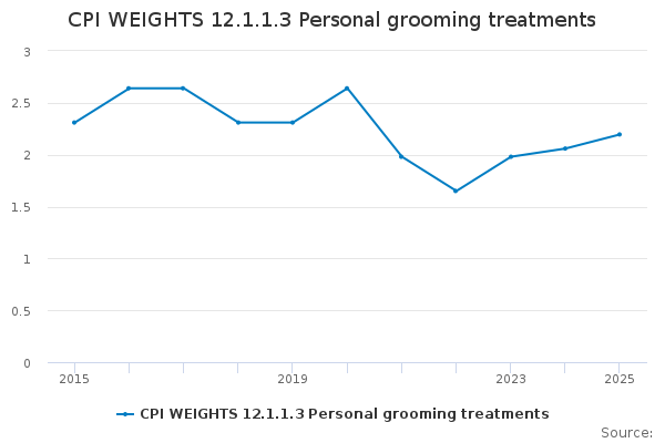 Download this time seriesCPI WEIGHTS 12.1.1.3 Personal grooming treatments