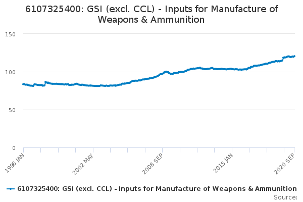 Download this time series6107325400: GSI (excl. CCL) - Inputs for Manufacture of Weapons & Ammunition