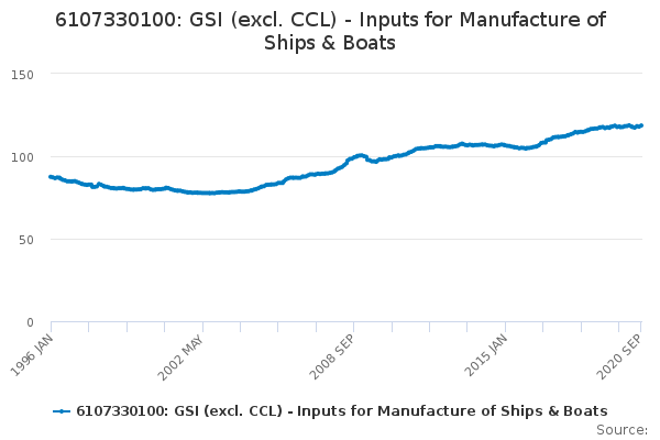 Download this time series6107330100: GSI (excl. CCL) - Inputs for Manufacture of Ships & Boats