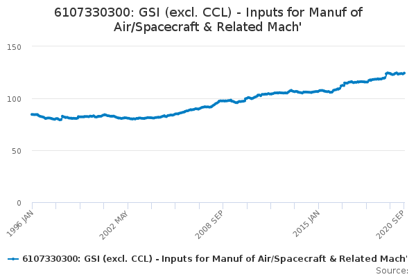 Download this time series6107330300: GSI (excl. CCL) - Inputs for Manuf of Air/Spacecraft & Related Mach'