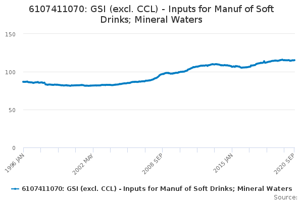 Download this time series6107411070: GSI (excl. CCL) - Inputs for Manuf of Soft Drinks; Mineral Waters