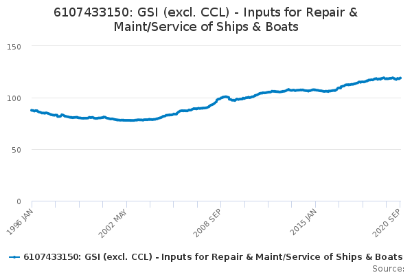 Download this time series6107433150: GSI (excl. CCL) - Inputs for Repair & Maint/Service of Ships & Boats