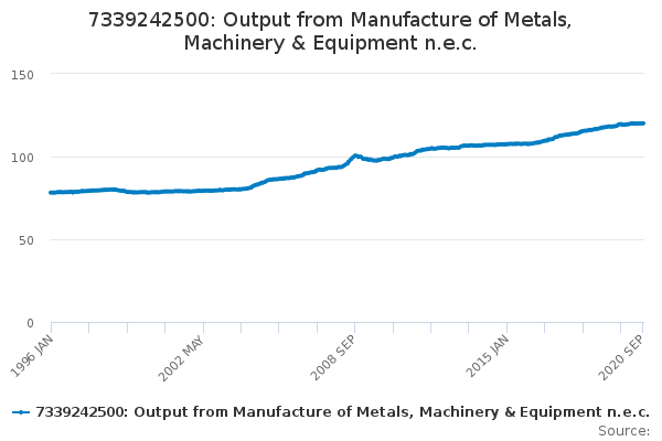 Download this time series7339242500: Output from Manufacture of Metals, Machinery & Equipment n.e.c.