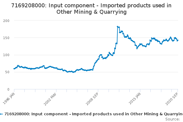 Download this time series7169208000: Input component - Imported products used in Other Mining & Quarrying