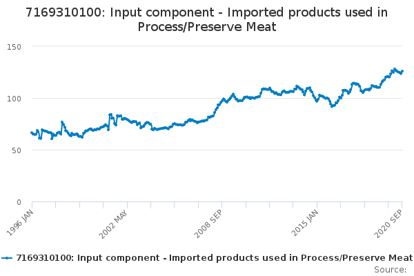 Download this time series7169310100: Input component - Imported products used in Process/Preserve Meat