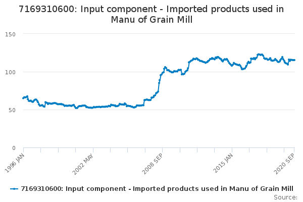 Download this time series7169310600: Input component - Imported products used in Manu of Grain Mill