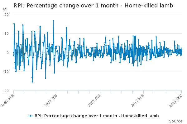 Download this time seriesRPI: Percentage change over 1 month - Home-killed lamb