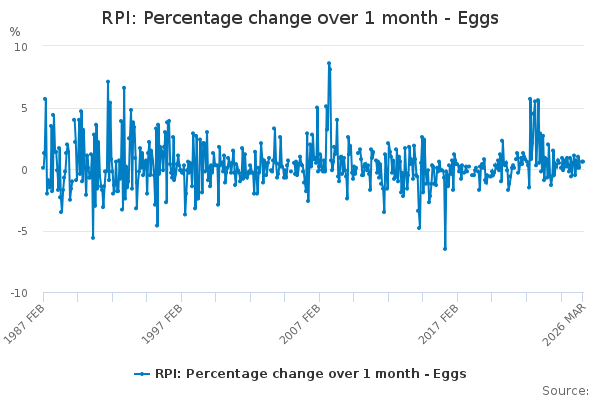 Download this time seriesRPI: Percentage change over 1 month - Eggs