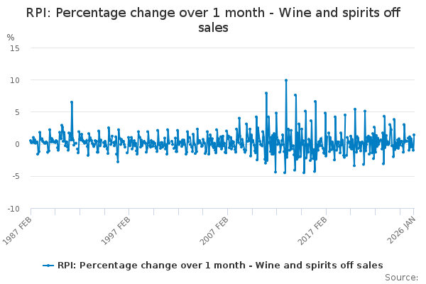 Download this time seriesRPI: Percentage change over 1 month - Wine and spirits off sales