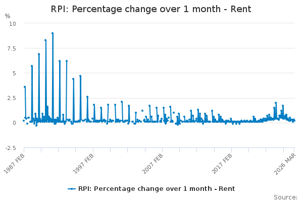 Download this time seriesRPI: Percentage change over 1 month - Rent