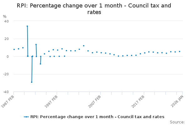 Download this time seriesRPI: Percentage change over 1 month - Council tax and rates