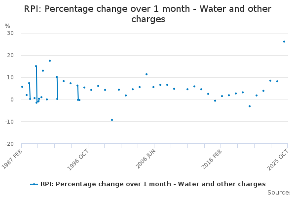 Download this time seriesRPI: Percentage change over 1 month - Water and other charges