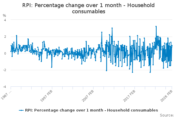 Download this time seriesRPI: Percentage change over 1 month - Household consumables