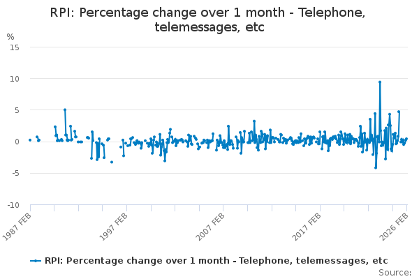 Download this time seriesRPI: Percentage change over 1 month - Telephone, telemessages, etc